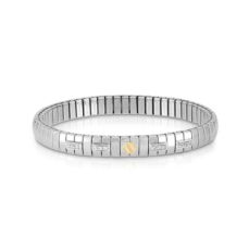 PULSERA NOMINATION EXTENSION DE ACERO, ORO, PLATA, CIRCONITAS BLANCAS Y CORAZON DORADO 047010 005